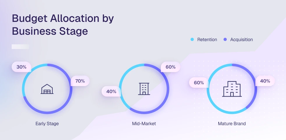 A static 50/50 budget split between acquisition and retention marketing is a myth. Capital allocation must evolve dynamically based on the maturity of your gross revenue retention (GRR) and the depth of your historical data.